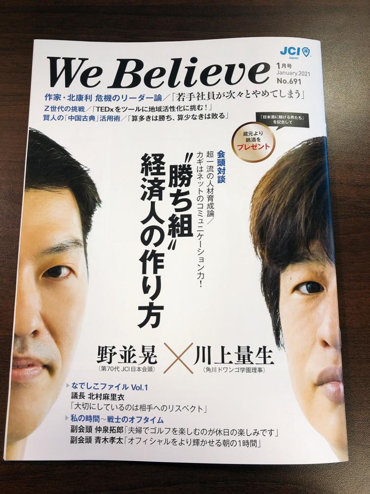 さて僕らの担当している事業の一つ、皆様に郵送されている「We Believe」というJCI日本発刊冊子の取材・作成業務があります。と言っても、この記事や写真を見られたら一目瞭然で素人達にて作られているものではなく、本年はビジネス雑誌を主に刊行するベストセラーを多数輩出されている出版社「株式会社プレジデント社」にて、その中でも長きに渡り編集記者の最前線で活躍されている執行役員の金森様と一緒に取材作成することによって心得や相手に伝わりやい記事の書き方について教わりながら作成された優れものの冊子になります。