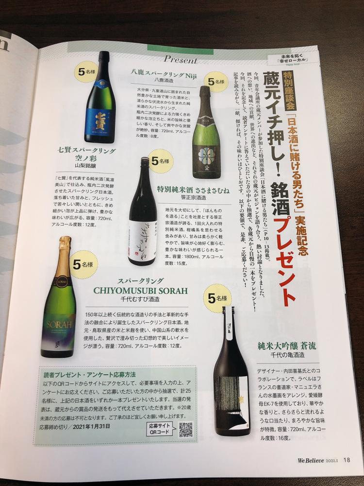また、僕らの議長はただ面白い記事を配信しているだけだと「面白みに欠けるやんけ!」の一言により各蔵元様より半強制的に?PR用にも厳選日本酒を5社各5本ずつ(計25本)のプレゼント企画を実施されております。普段酒屋でも手に入りにくい限定日本酒も当たるチャンスがありますので是非再度目を通して読者プレゼント・アンケートをしてみて下さい:応募締切は2021年1月31日までです。ちなみにアンケートは耳の痛くなるような指摘でもなんでも結構です。より良い誌面を作っていきたいので何なりとご意見賜りますよう宜しくお願い致します。