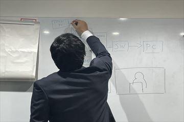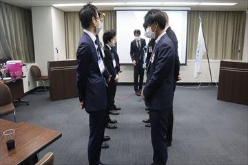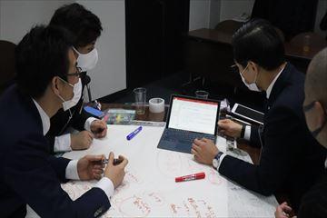 当日はバッジ授与式を終えた14時より研修が始まりました。名刺の渡し方や、パーソナルスペース、締めの挨拶、葬儀での振る舞いなど一通り講義を受けた後、2チームに分かれて「会員交流」をテーマに事業を組み立てるという課題が発表されます。
