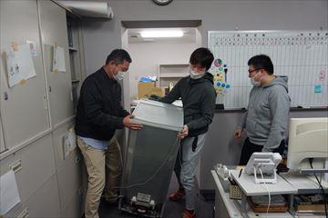 最初は、第一ホテルの荷物をトラックに詰め込む作業からでした。途中で、地場もん屋のほうに人手がほしいと言われたため、移動して引越しを行いました。まず新事務局にて、以前ホワイトボードを取付けていたであろう下地材を外す作業に入ったんですが、全然とれませんでした。。。。。工具のモンキーを持ってきてもらうも、大きすぎて全然ナットが緩まらなかったです。棒を折ればいいんじゃない?という声もあがりましたが元現場管理職の血が騒ぎ絶対に取ってやろうと感じました。