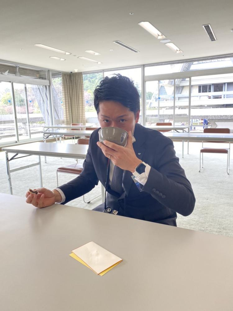 ここまでくるとこういうお菓子が正解になるのか?と疑問に感じながらも、頭から食べるのか?体から食べるのか?正解がわからず、周りをキョロキョロしてカンニングをしようと思いましたが、周りを見渡しても私と同じ状態の浅井専務とわしづかみでお菓子を食べようとしている西村総務委員長しかおらず、心の中で予習しておけば良かったと呟いて頭と体を千切って体から食べました。そこからお茶を頂いて帰るまで正解探しの旅です。お茶碗を受け取る時は右手から?左手から?何か御礼を言わないといけないの?お茶碗を誉めたり感想を言わないといけなかったような?飲む前にお茶碗回していた記憶があるけどどっち回りに角度は何度回せばいいの?飲む時は音をたてるの?飲み終わったら何か言わないといけないの?再び周りを見渡すと、西村総務委員長が大河ドラマのうつけものの織田信長みたいに片手にお菓子、片手にお茶を持って、満面の笑みで「お茶って美味しいっすね~」と言っており、悩んでいるのが馬鹿らしく、私もこれくらい大物になりたいと軽く嫉妬しました。