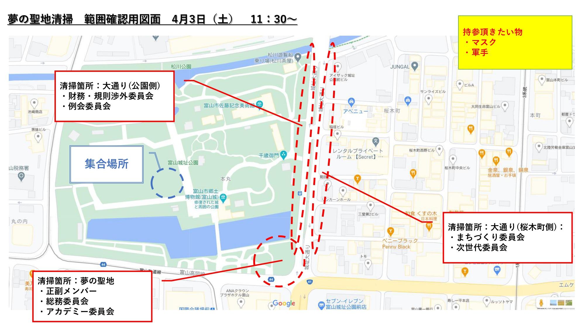 集合場所 :富山城址公園内広場 清掃場所は別紙資料