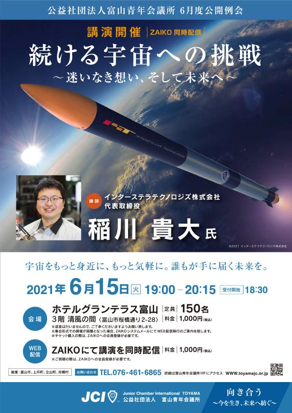 演 題:6月度公開例会 続ける宇宙への挑戦~迷いなき想い、そして未来へ~
