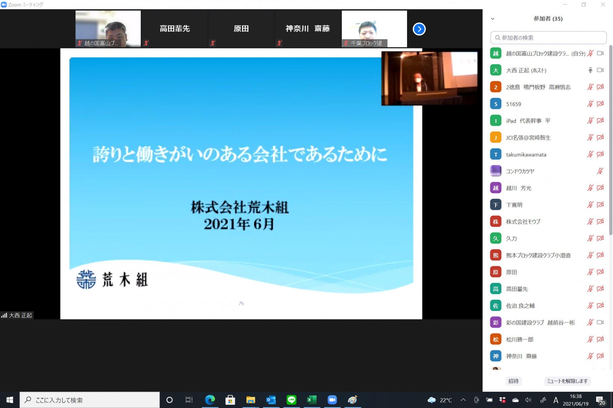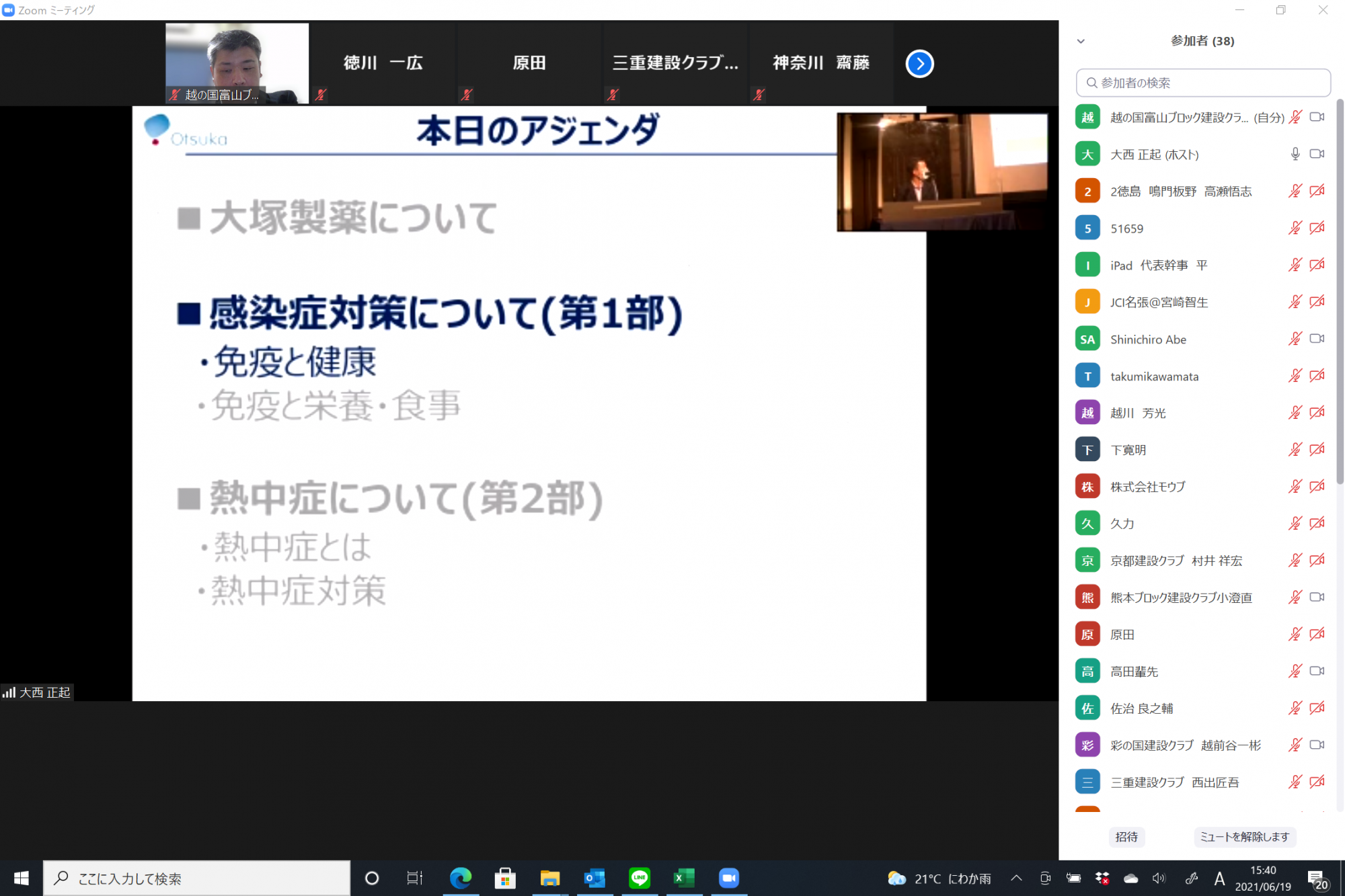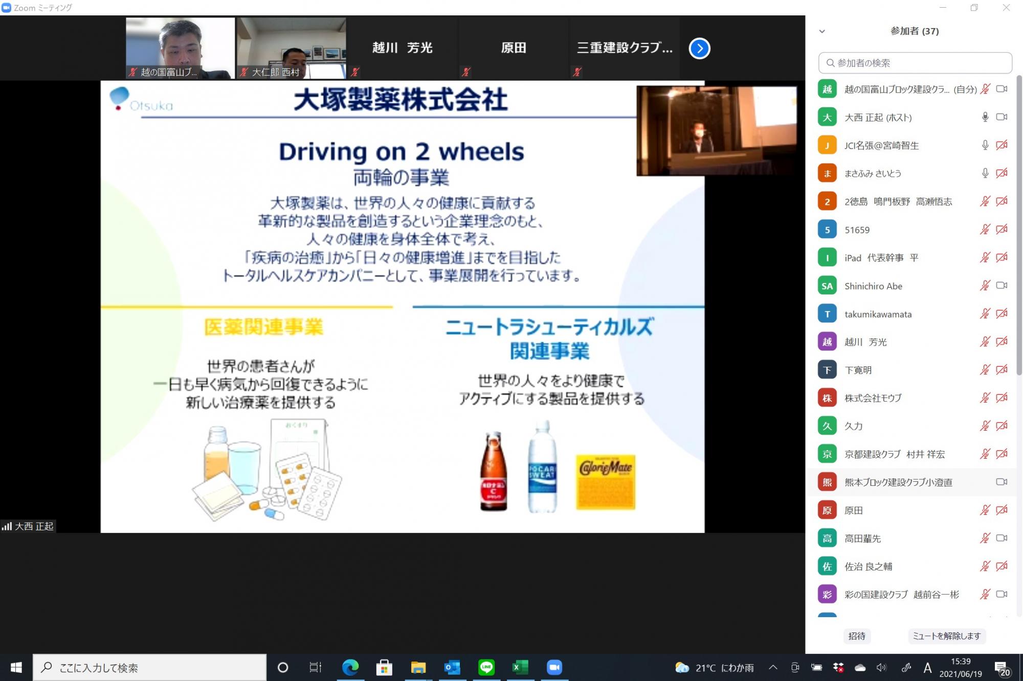 去る6月19日(土)に開催されました、建設部会 本会の6月度定例会は、感染症対策や熱中症対策の観点から健康経営(従業員の健康を経営的視点から考え、戦略的に実施すること)について学ぶとともに、品質向上に向けた人材育成への取組みを学び、働きやすい職場環境づくりに繋げていただくことを目的に、大塚製薬さんとJCI岡山の先輩でもあります、荒木組 荒木社長よりご講演をいただきました。