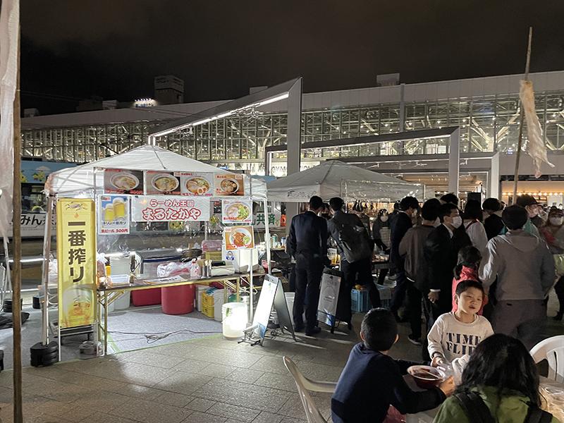 副理事長の新田です。10月29日(金)に富山駅で行われた「よぞら駅道」に顔を出してくださった会員のみなさん、ありがとうございました。プチ正副メンバーを中心に、ピザ、豚汁、フランクフルト、ビール、チューハイを販売する露店を出店しました。当日は天候もよく会場は大変な賑わいで、とても楽しい夜になりました。色々な外部の方との触れ合いもあり、やはりJCは「まちに出てってなんぼだな」と思わされた機会でした。