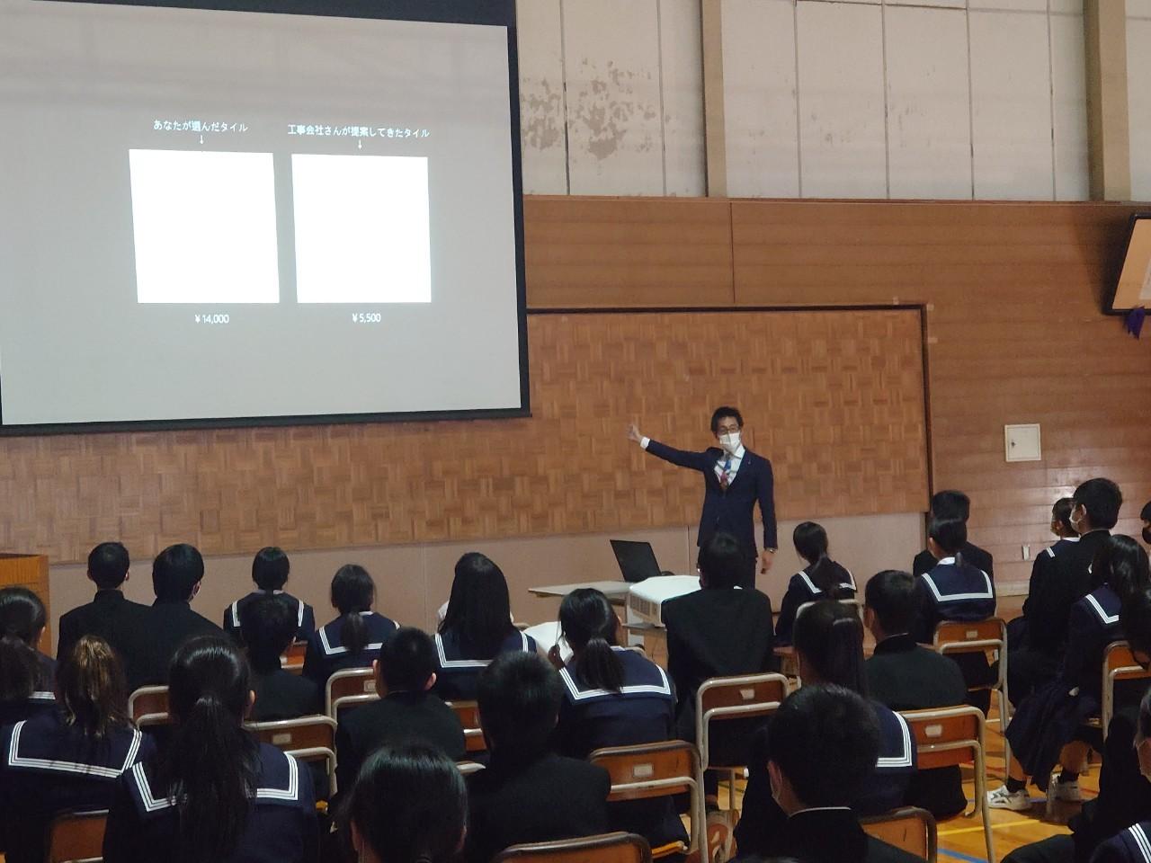 その後も、そのお金はどう使うのか?とか、家はいくらで建つのかなどなど、終始お金に関わる質問ばかり。尽きない質問が喜ばしいとともに、中学1年生が、「お金」という事にこれだけ興味を持っている事にちょっと驚きました。