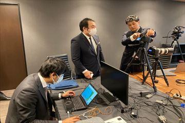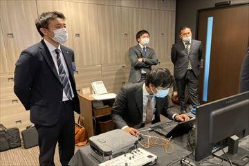 事業当日、松原副理事長からカメラのリセット方法についてレクチャーを受ける奥村委員長。