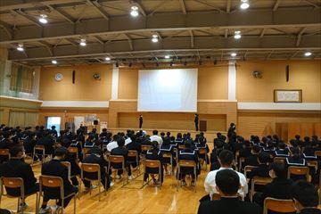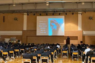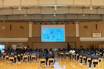 本番では、立派なステージを準備していただいており、距離がありすぎて生徒の表情が分かりませんでしたが、最後には多くの質問をいただけたのできっと授業の内容が伝わったのではないかと思っております。