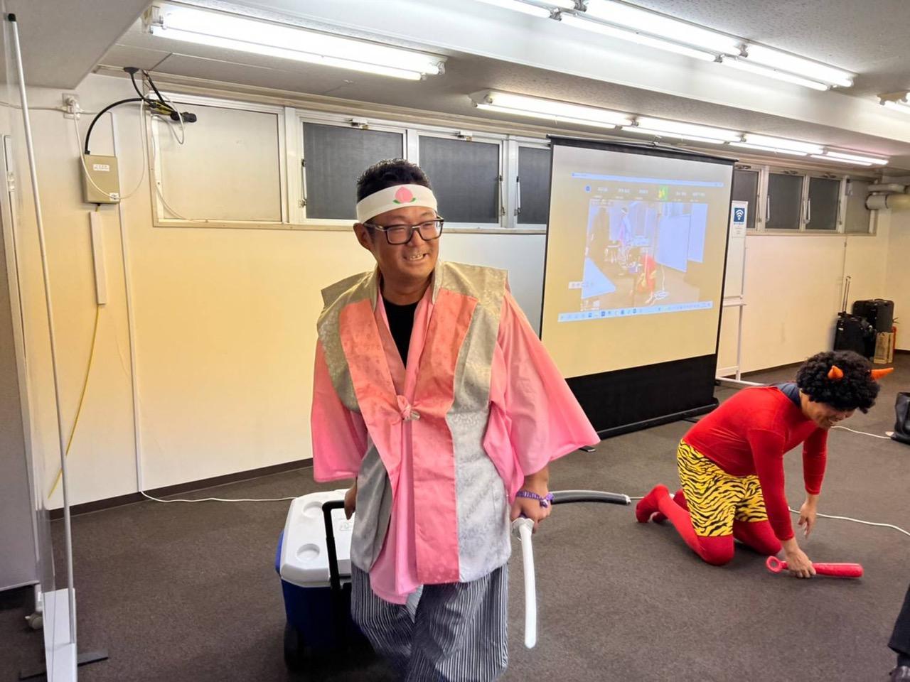 余興プランは会頭訪問時のものを模倣しているのが、固まっていないスケジュールの中で衣装も着ずに読み合わせなしの一回練習のみで、「あとは雰囲気で乗り越えましょう」のブッツケアドリブという自分が一番苦手な手法で進められました。そして先に会議体の別会場に戻って全体集合して委員会会議が始まる。会議が始まっても余興の不安が駆け巡る中で委員会終了時に諸始めの岡山メンバーでの第一回余興が始まる。そこもブッツケ練習なしだったらしいが非常に盛り上がりました。そこから懇親会会場で乾杯、議長挨拶、アトラクション万歳、ついに僕らの余興が。でも岡山メンバーの引っ張り?で滑りながらも衣装のクオリティもあってソコソコウケで滞りなく終了しました。